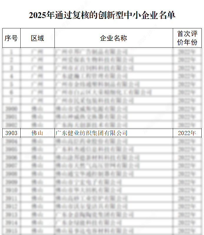 喜报 | 健业纺织集团成功通过2025年度广东省创...